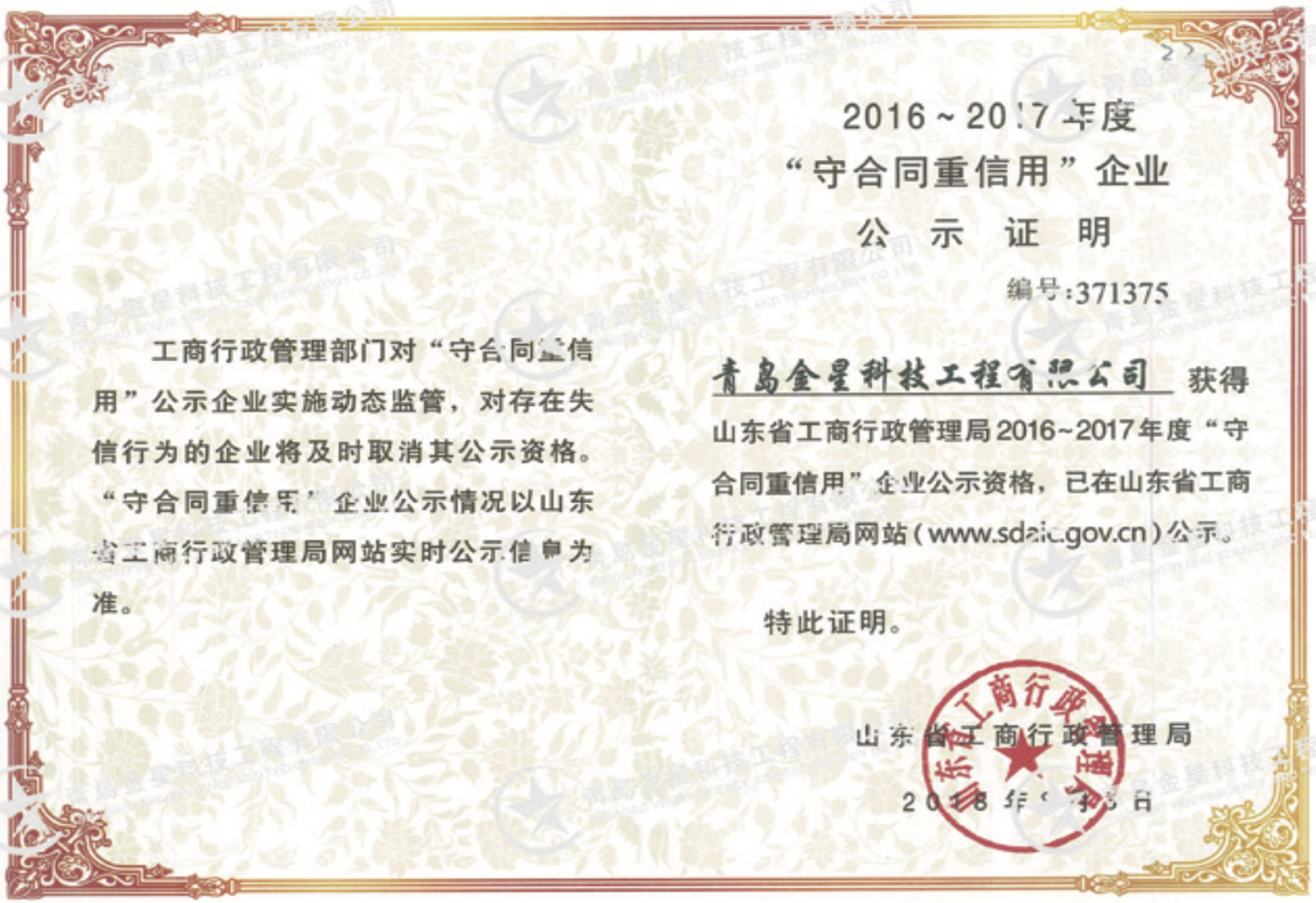 近几年分别获青岛市2004年度建筑业“管理先进单 位”荣誉称号;获青岛市2005年度“十佳专业承包企业”荣誉称号;获青岛市2006年度、2007年度、2008年度建筑施工标准化管理先进单位;获2006年度青岛市建筑智能化 行业经营业绩“十佳企业”;获青岛市2007年度、2008年度建筑业“专业承包十强企业”;公司为青岛市建筑业常务理事单位、青岛市建筑智能化协会理事单位、青岛市安 全技术防范协会会员单位、青岛市企业信用协会会员单位。